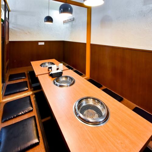 我們提供可容納 8 人的半私密下沉式暖桌座位。下沉式的暖桌座位,可以脫掉鞋子放鬆身心,非常適合與同事一起喝酒聚會、家庭聚餐和小型聚會。您可以在輕鬆的氛圍中享用正宗的烤肉,而無需擔心周圍的人。